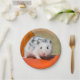 Hámster sirio poliblanco salpicado de blanco, piel blanca con pequeñas manchas negras, estos lindos mascotas de la casa también llamados Hámster dálmata. Foto tomada por Katho Menden, estos platos de papel fiesta desechable son un regalo encantador para los amantes de los hámster y las mascotas. http://www.zazzle.com/kathom_photo - Puede agregar su propio texto presionando el botón personalizar it.