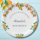 Celebra la llegada de A Little Cutie con estas elegantes y personalizadas Placas Baby Shower Brunch de Citrus! Perfecto para un brunch de bebé sin distinción de género, estos modernos platos de papel presentan un diseño impresionante que combina un arco de vibrantes naranjas cítricos mezclados con exuberante vegetación botánica y delicadas flores de naranja blanco. El diseño, con un fondo blanco de moda, evoca el encanto de un cítrico mediterráneo, por lo que es ideal para el tema de la ducha de cítricos. Práctico pero elegante, estos platos le dan un toque de sofisticación a su día especial mientras mantiene la limpieza sin esfuerzo.