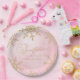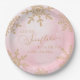 Estos son un pequeño copo de nieve dorado rosado Tan Beige Invierno Wonderland Baby Shower Paper Plates!