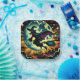 Platos de papel de la fiesta de Halloween. ... ¡Coge tu escoba y vuela! Una bruja espeluznante volando sobre una escoba frente a una gráfica de luna llena hecha al estilo de arte pop de un libro de historietas.