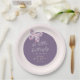 Una mariposa pequeña está en el camino de las placas de papel de Baby Shower. El diseño presenta una mariposa floral en un fondo morado oscuro, rosa polvoriento y azul con un sutil entramado de tela alrededor del borde. Se incluye una pequeña mariposa como diseño de elementos. Todos los demás textos pueden ser modificados, incluyendo fuentes, colores, etc. © Kimbellishy LLC
