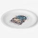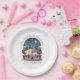 Un elegante plato de papel aporta el encanto de "Una Noche en París" directamente a tu mesa, con su sofisticado y moderno diseño. Su llamativo estilo bloque de color combina la estética contemporánea con imágenes parisinas icónicas. El fondo muestra la majestuosa Torre Eiffel, iluminada bajo el cielo nocturno, simbolizando el romanticismo y el encanto de París. En primer plano, una vívida representación de un café parisino por la noche, lleno de actividad y resplandeciente bajo las luces de la calle, invita a los clientes a disfrutar de un momento de delicia culinaria en el corazón de París. Este plato es perfecto para fiestas temáticos, celebraciones o cualquier evento que desee un toque de elegancia parisina combinado con un toque moderno.