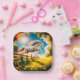 Estas placas de papel tienen un unicornio retratado en ellas.