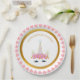 Plato De Papel Unicornio, flores y puntos de oro