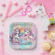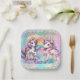 Estos encantadores platos de fiesta unicornio son perfectos para cualquier celebración mágica de cumpleaños. Con dos adorables unicornios adornados con flores, un brillante arcoiris y brillantes acentos purpurinas, estos platos le darán un toque de encanto a un día especial para su hijo. Los colores pastel y el diseño caprichoso hacen que sean ideales para los fiestas con temática de unicornio.
