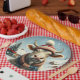 Plato De Papel Vaca cultivada con atuendo de invierno precoz e in