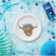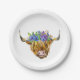 Plato De Papel Vaca escocesa Highland con acuarela de flores