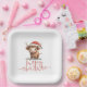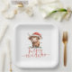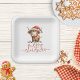 Plato De Papel Vaca Highland en Santa Hat Feliz Navidad