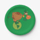 Una vaca irlandesa divertida parada en un planeta verde con un trébol en la boca. Este diseño parece realmente efectivo en estas placas de papel