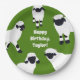 Estas placas de papel para fiestas de cumpleaños son perfectas para fiestas con temática agrícola o para arrojar un fiesta a cualquiera que ame ovejas. Estos suministros fiestas incluyen ilustraciones de ovejas de Valais Blacknose en blanco y negro contra un brillante fondo verde. Están listos para ser personalizados con tu propio mensaje con letras en negrita.