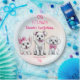 Vamos pavorientos cachorros blancos y rosas lindos adorables con arcos rosados Chica fiesta de cumpleaños plancha plancha de plancha cachorro perros de cachorro personalizados temática fiesta de cumpleaños tableware fiesta personalizado