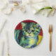 Placas de papel con un gato en forma de tabby al estilo de Van Gogh! Este gatito dulce se posa adorablemente sobre un parqué de madera contra paredes rojas y una ventana. ¡Un regalo increíble para los amantes del gato y para los coleccionistas holandeses de arte!