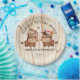 El género de vaquera de vaquero revela el fiesta lindo caballo de bebé en acuarela plantilla personalizada de placas fiestas. Caballo bebé vaquero y vaquera bebé con flores, fondo de madera, para los amantes del caballo.