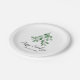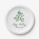 Estos platos de papel festivo están decorados con mistletos de color verde agua y dicen Felices Fiestas en tipografía elegante. Personalizable fácil. Acuarela original © Michele Davies.