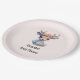 Platos de papel con un ilustracion adorable. Un bebe dulce con ojos grandes, cuernos y un pequeño amigo mariposa. Diseño atrevido.