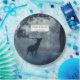 Placas de papel con la foto de un ciervo majestuoso con cuerdas paradas en un bosque sombrío entre árboles iluminados por el sol. Nieve por todas partes.