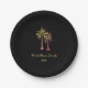 En verano se bañan platos de papel negro fiesta, con un diseño de ilustracion de palmeras tropicales y letras de personalizable. Ideal para planear su fiesta de picnic con un tema de playa.