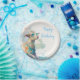 Bonitos platos de papel de cumpleaños con una cabra de vibración de verano. Para las personas nacidas en verano. Personalizar este producto con cualquier texto.
