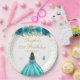Este elegante y glamoroso plato de fiesta de cumpleaños presenta una hermosa princesa con el pelo oscuro y la piel oscura en un verde azulado vestido de bolas azules. El texto combina el guión manuscrito y las fuentes sans serif modernas para un aspecto elegante y sofisticado. Los arreglos florales, las mariposas y los confeti dorados crean una perfecta mezcla de rústico y moda. Gráficos de www.etsy.com/uk/shop/SunflowerDayLove