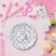 Bonitos platos de papel para los invitados a la fiesta de cumpleaños de Sirena, con una sirena negra, estrellas de mar, flores y pastelitos. El diseño es personalizable y personalizado: puede cambiar el nombre y otro texto en este diseño. Tonos pastel morados y verde azulados.