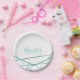 Plato De Papel Verde azulado Aqua Líneas Geométricas Modernas Per