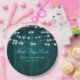 Verde azulado plato rústico de papel casero con madera rústica adornado con luces de cuerda.