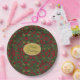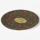 Plato De Papel Verde rojo dorado, Acebo y amarilis Felices Fiesta