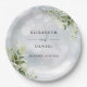 Elegante plato de papel de bodas de invierno de vegetación floral personalizado con sus nombres y fecha especial de boda. Diseñado por Thisisnotme©