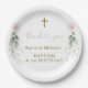 Plato De Papel Verdor Oro Floral Rosa Bautismo Primer Cumpleaños