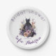 Vestido negro acuarela, ideal para una ducha de novia púrpura. Estos son platos de papel, perfectos para agregar un toque especial. Diseño de acuarela con un vestido negro, bellamente adecuado para un evento de ducha de novia con tema púrpura. Estos stickers redondos clásicos son una excelente opción para decoraciones y favores.