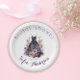 Vestido negro de acuarela, ideal para una despedida de soltera morada. Estos son platos de papel, perfectos para agregar un toque especial. Diseño de acuarela con un vestido negro, bellamente adecuado para una despedida de soltera con tema morado. Estos stickers redondos clásicos son una excelente opción para decoraciones y detalles.
