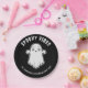 El ilustracion personalizado de Destei de un personaje fantasma adorable con ojos grandes y una expresión de cara espeluznante. El color de fondo es negro y hay dos áreas de texto personalizables. Una de las plantillas de texto dice: "Vibes fantasmales", mientras que en la otra hay espacio para un nombre de fiesta personalizado, por ejemplo. Este diseño personalizable es ideal para la temporada espeluznante.