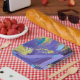 This is Sparkler, an abstract art design in purple, yellow, and blue that brings a lively energy to your table on holidays and all kinds of days! Perfect for whatever season your holiday celebration is in! Blueberry scones would sit proudly on this plate. So would yellow cake, or lemon cake if you like that better! I can see it sporting thick slices of turkey, or corn on the cob. And this plate would turn any humble green salad into a knockout!