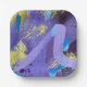 Plato De Papel Vibrant Purple, Yellow, and Blue Abstract Art