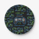 Plato De Papel Videojuego Neon Blue & Green Birday Party
