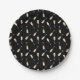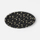 Celebre con estilo con elegantes platos de papel de cumpleaños. Este diseño presenta un patrón disperso de copas de champán en un fondo negro. La clásica paleta negra, blanca y dorada desprende sofisticación. ¡Ideal para marcar el tono de una celebración inolvidable! © Kimbellished, LLC