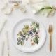 Hermosa imagen en acuarela de una vid con uvas en tonos verdes y púrpura. Agregue texto para crear una servilleta para bodas, duchas, cumpleaños o aniversario.