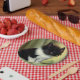 Placas de papel con el querido gatito de esmoquin! Este gatito blanco y negro posa con tacto sobre mantas verdes y rojas. ¡Un regalo maravilloso para los amantes del gato y del arte victoriano!