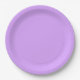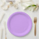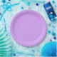 Platos de color violeta claro a juego con la decoración fiesta temática.