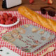 Un diseño vintage de hojas, calabazas y arándanos, también hay una cita maravillosa " Live in Thankding "