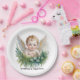 Plato De Papel Watercolor Baby Angel with Greenery Baptism