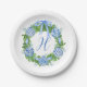 Plato De Papel Watercolor Chinoiserie Navidades Wreath Monograma