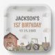 Plato De Papel Watercolor Tractor Farm 1er cumpleaños