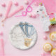 These plates feature a soft hot air balloon teddy bear design and modern fonts. The script heading is an image that cannot be edited. All of the other text is fully editable. For more advanced customization of this design, simply select the "Customize It" button above.