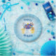 El logotipo clásico de Webkinz ancla esta imagen de un perrito, de un hipopótamo, de un león, de un mono, de un pájaro y de un gato felices de Webkinz. ¡Un fondo azul rayado emocionante acentúa sus expresiones alegres, especialmente el perrito y el hipopótamo altos-fiving en el primero plano!