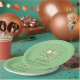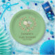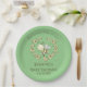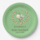 Las fantásticas placas de papel para bebés cuentan con una hermosa corona de abejas y flores con texto de personalizable sobre fondo verde.