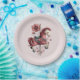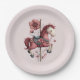 Paper plates with a cute retro style carousel horse. Drawn in Pretty pink colors with fancy flowers.