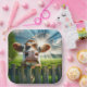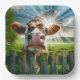 Plato De Papel Whimsical Cow Peinando Sobre El Alambre