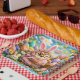Description bring joy and colour to your Easter celebrations with this delightful design featuring an adorable bunnies surrounded by vibrant decorated eggs flowers and playful details. This artwork is perfect for party plates cups napkins and all your festive table wear the bright pastel colours and charming illustration create a cheerful fun atmosphere that everyone will love ideal for family gatherings Easter brunches