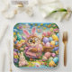 Plato De Papel Whimsical Easter bunny and colourful eggs